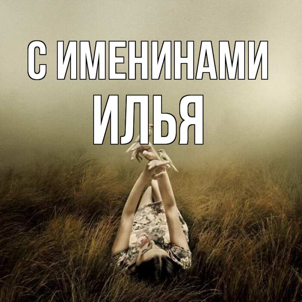 Открытка С именинами Илья. туман. девушка с голубями