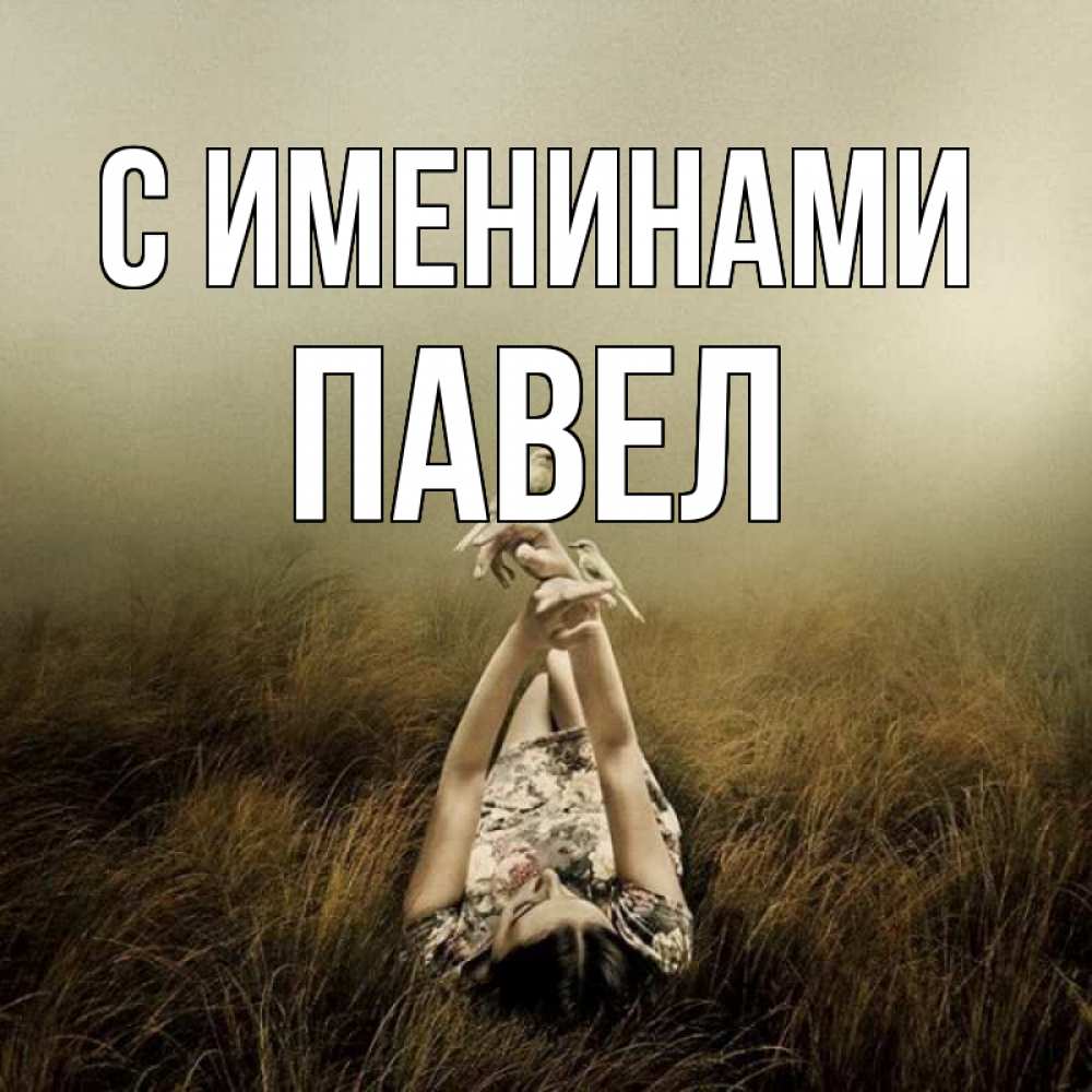 Открытка С именинами Павел. туман. девушка с голубями