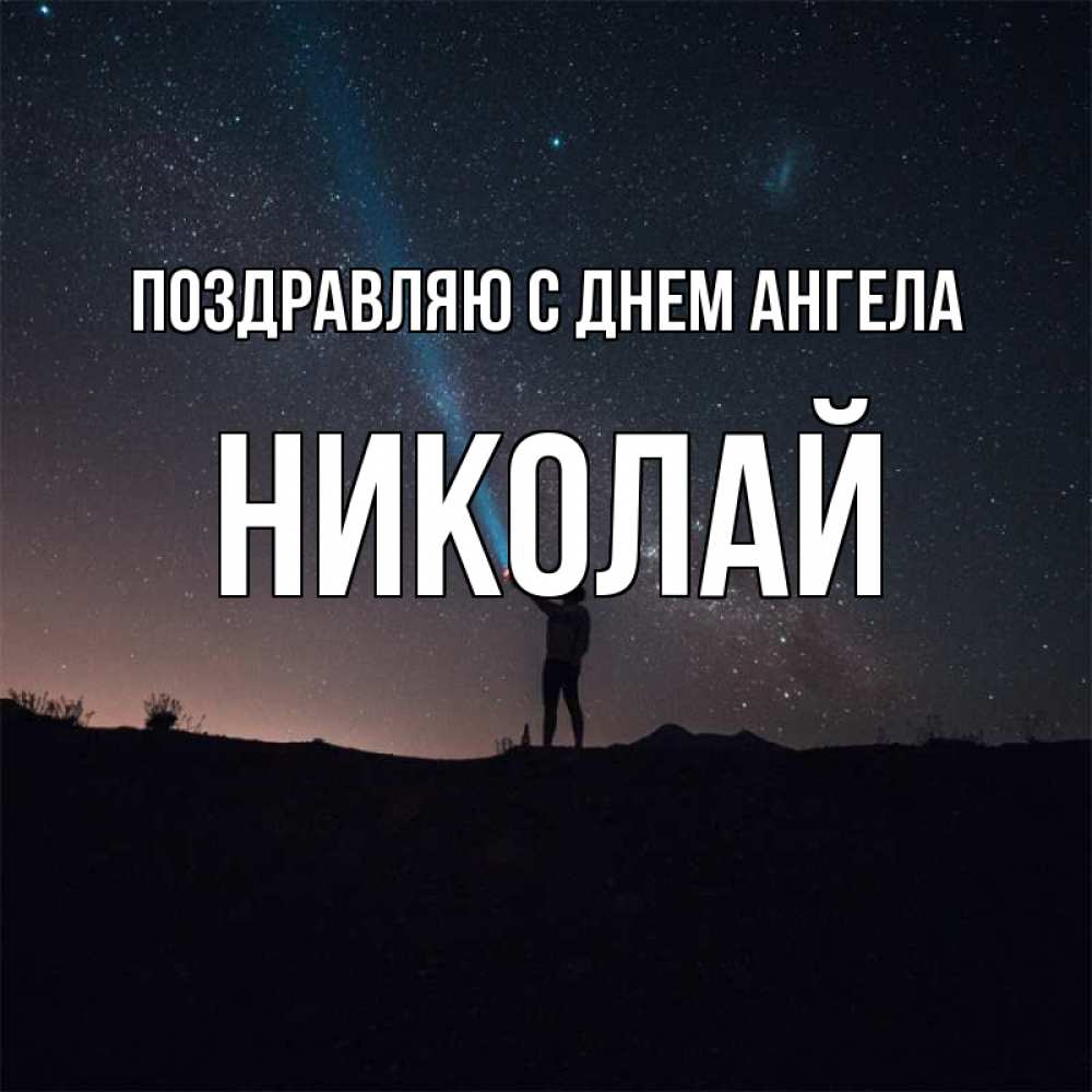 Открытка Поздравляю с днем Ангела Николай. я тебя ищу в небе. звезды и луч света
