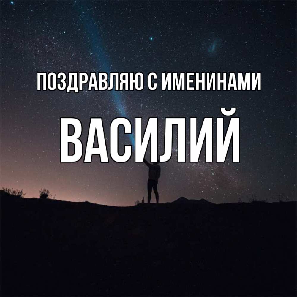 Открытка Поздравляю с именинами Василий. я тебя ищу в небе. звезды и луч света