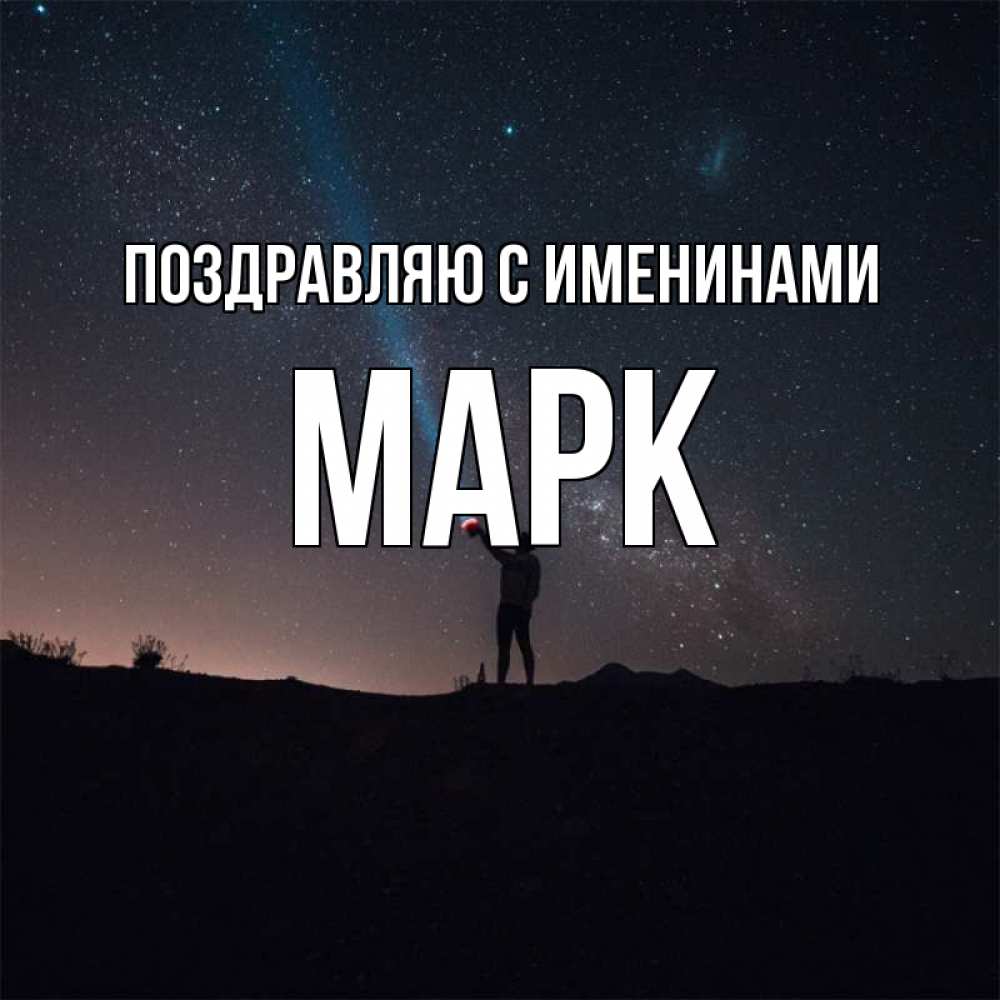 Открытка Поздравляю с именинами Марк. я тебя ищу в небе. звезды и луч света