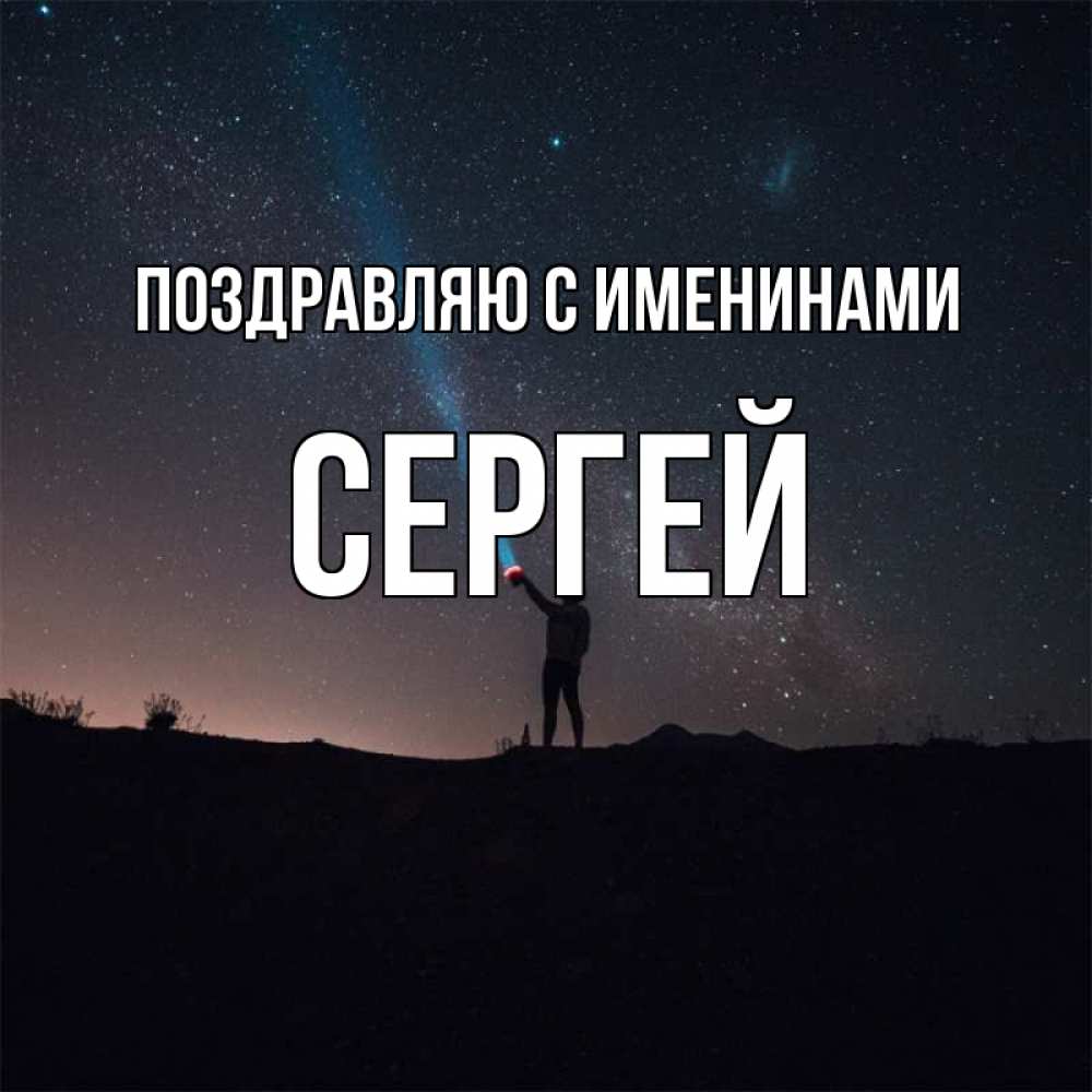 Открытка Поздравляю с именинами Сергей. я тебя ищу в небе. звезды и луч света