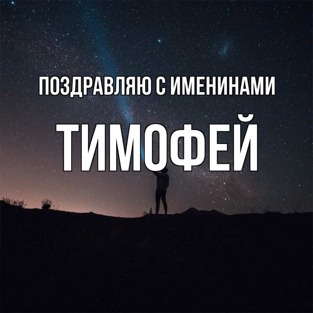 Открытка Поздравляю с именинами Тимофей. я тебя ищу в небе. звезды и луч света