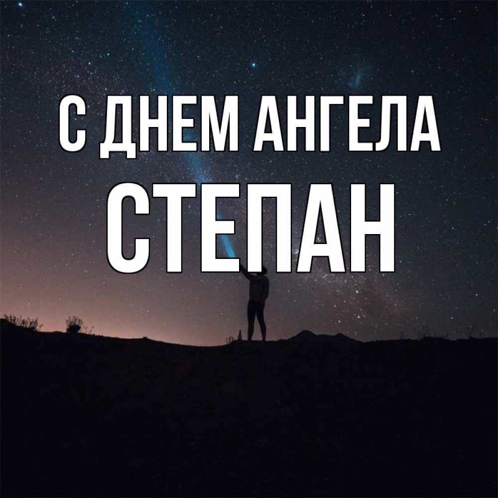 Открытка С днем Ангела Степан. я тебя ищу в небе. звезды и луч света