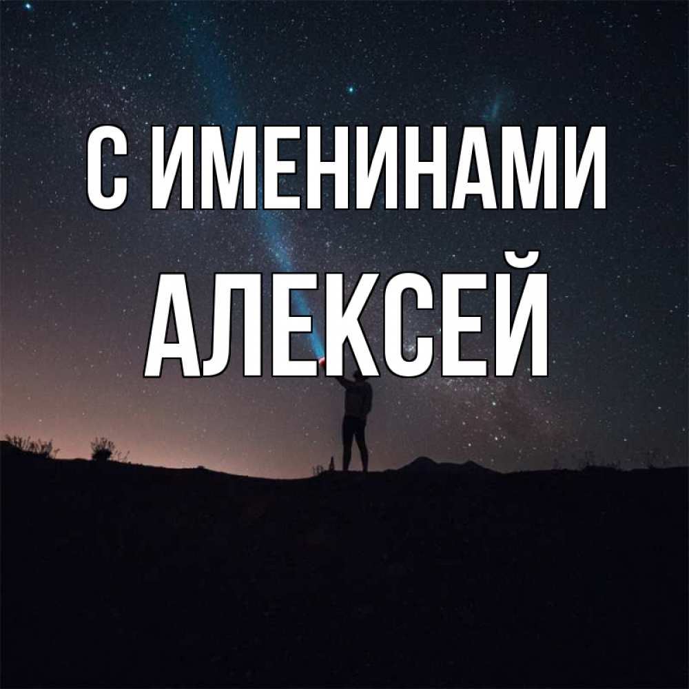 Открытка С именинами Алексей. я тебя ищу в небе. звезды и луч света