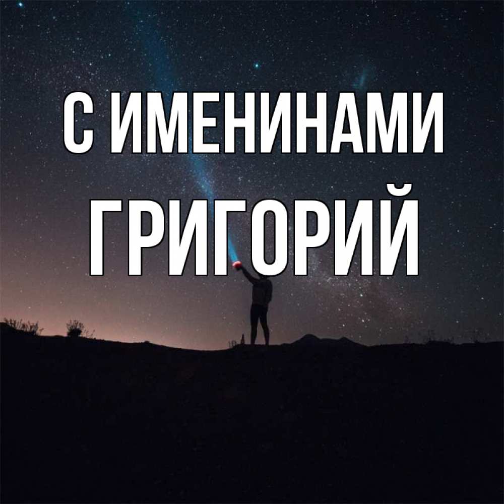 Открытка С именинами Григорий. я тебя ищу в небе. звезды и луч света