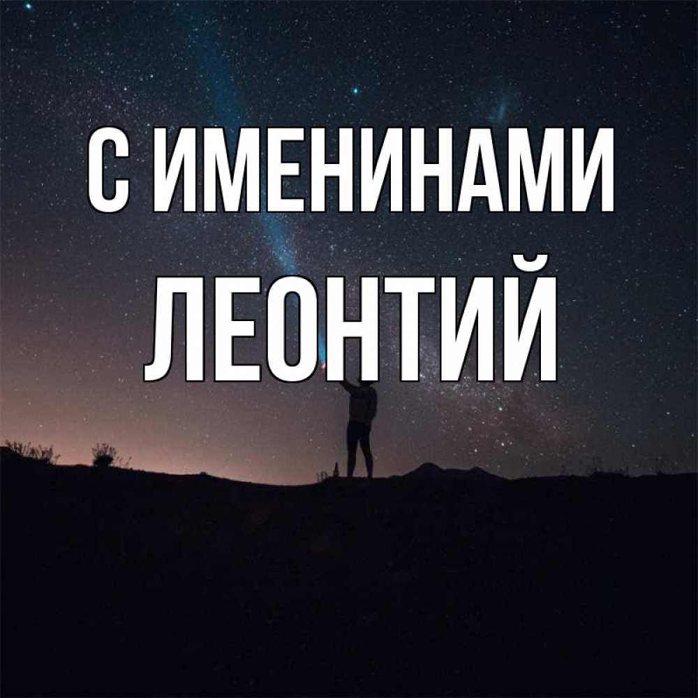 Открытка С именинами Леонтий. я тебя ищу в небе. звезды и луч света