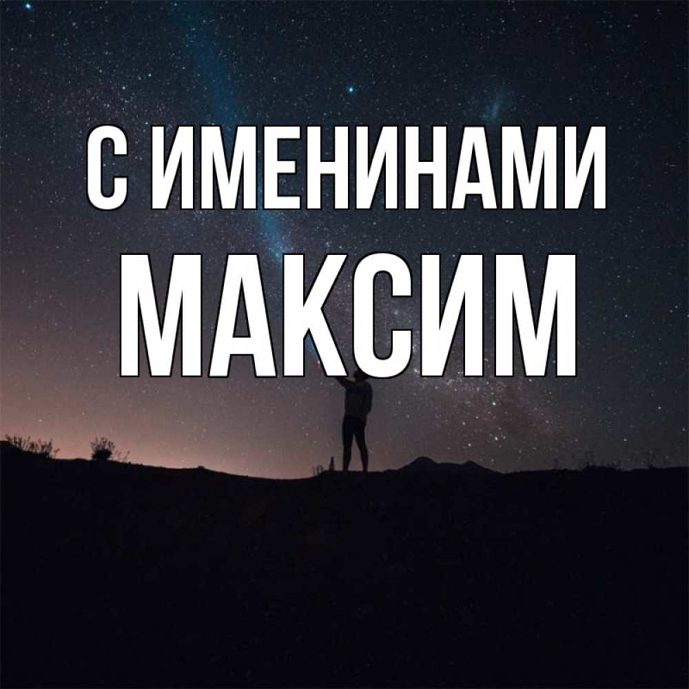 Открытка С именинами Максим. я тебя ищу в небе. звезды и луч света