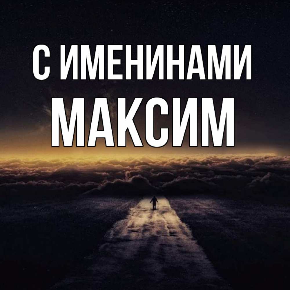 Открытка С именинами Максим. дорога в неизвестность. идем