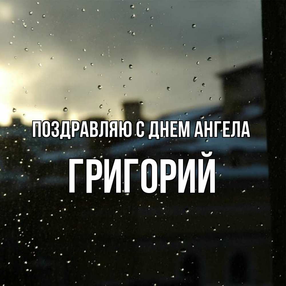 Открытка Поздравляю с днем Ангела Григорий. дождливо. капли на стекле