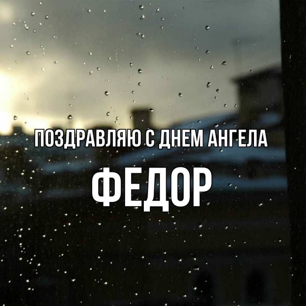 Открытка Поздравляю с днем Ангела Федор. дождливо. капли на стекле