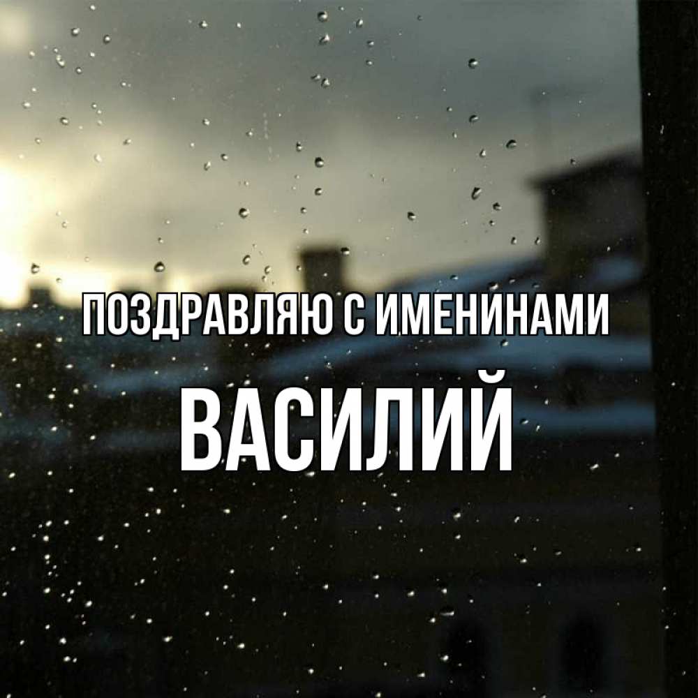 Открытка Поздравляю с именинами Василий. дождливо. капли на стекле