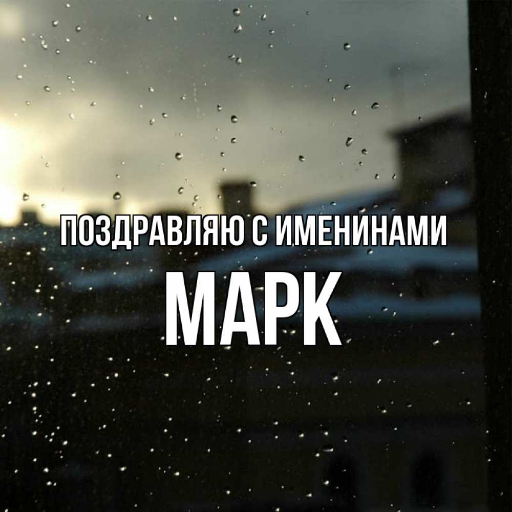 Открытка Поздравляю с именинами Марк. дождливо. капли на стекле