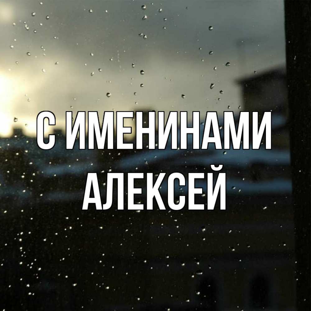 Открытка С именинами Алексей. дождливо. капли на стекле