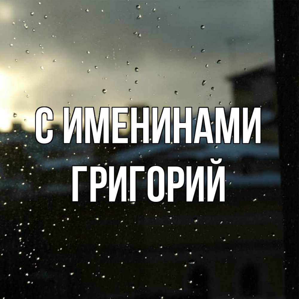 Открытка С именинами Григорий. дождливо. капли на стекле