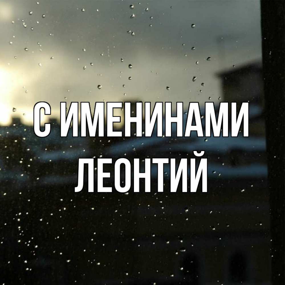 Открытка С именинами Леонтий. дождливо. капли на стекле