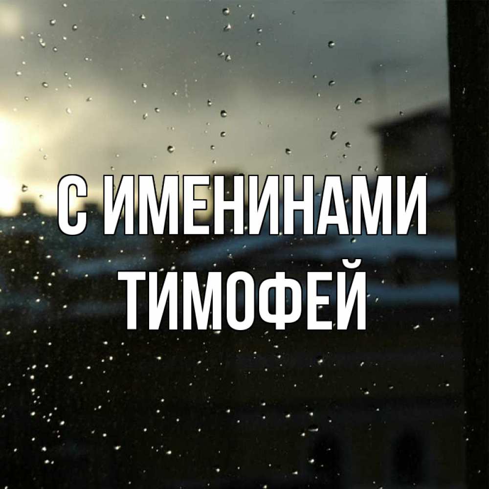Открытка С именинами Тимофей. дождливо. капли на стекле