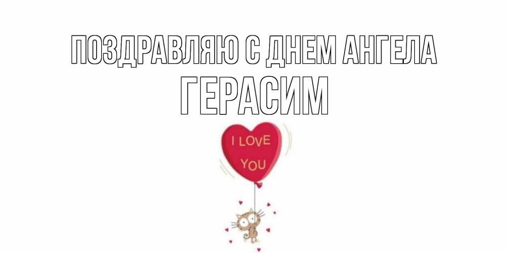 Открытка Поздравляю с днем Ангела Герасим. Котик на шаре в виде сердца. кот, сердце