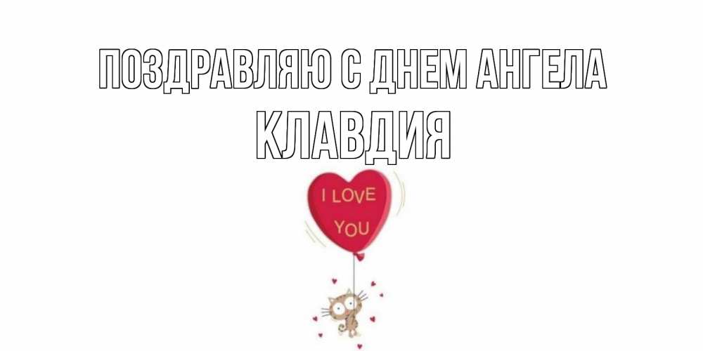 Открытка Поздравляю с днем Ангела Клавдия. Котик на шаре в виде сердца. кот, сердце