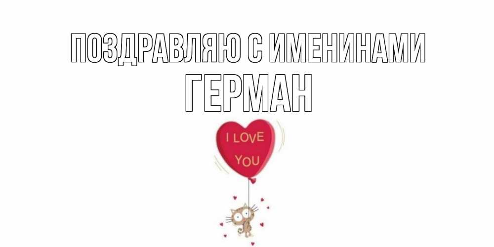 Открытка Поздравляю с именинами Герман. Котик на шаре в виде сердца. кот, сердце