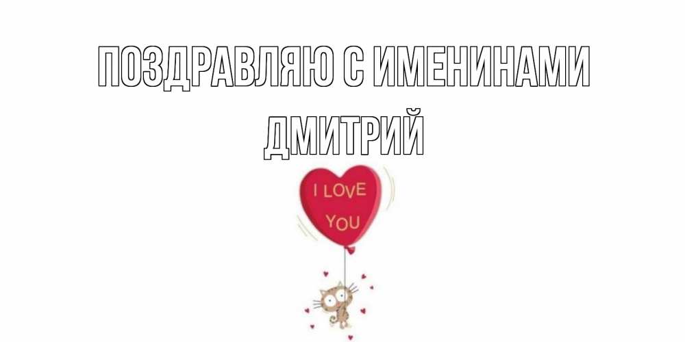 Открытка Поздравляю с именинами Дмитрий. Котик на шаре в виде сердца. кот, сердце