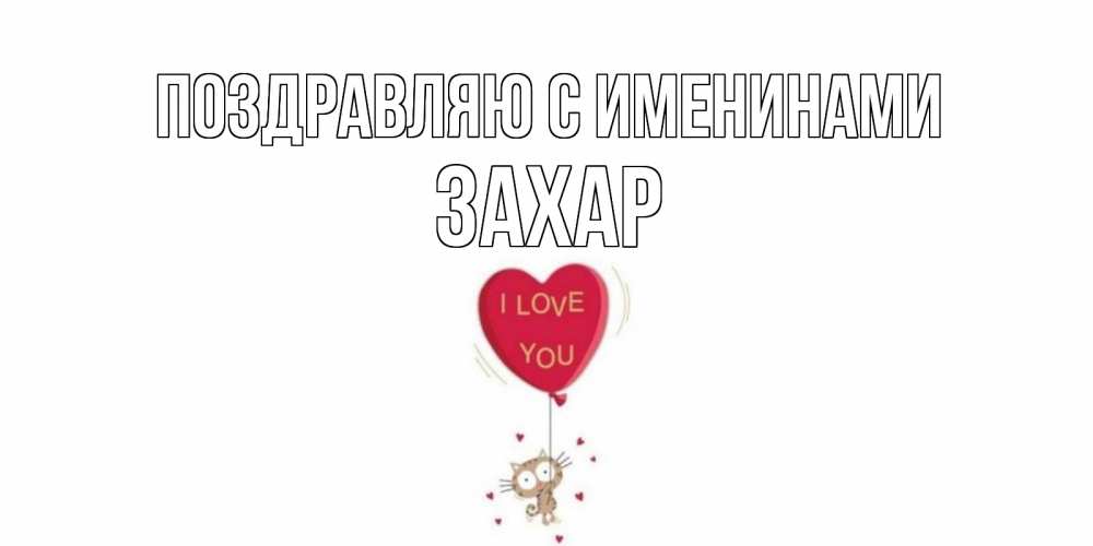 Открытка Поздравляю с именинами Захар. Котик на шаре в виде сердца. кот, сердце