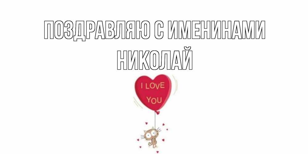 Открытка Поздравляю с именинами Николай. Котик на шаре в виде сердца. кот, сердце
