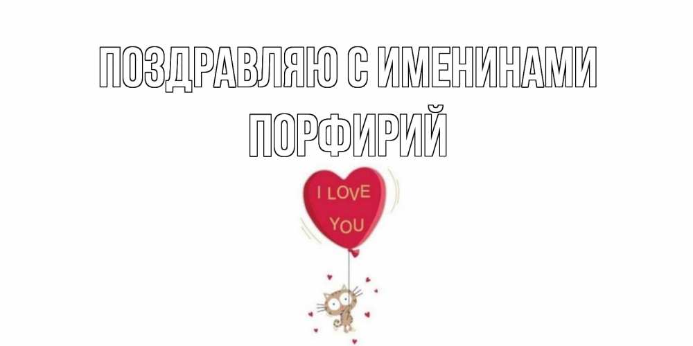 Открытка Поздравляю с именинами Порфирий. Котик на шаре в виде сердца. кот, сердце