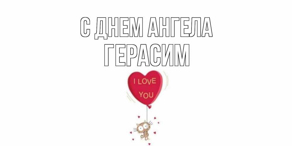 Открытка С днем Ангела Герасим. Котик на шаре в виде сердца. кот, сердце