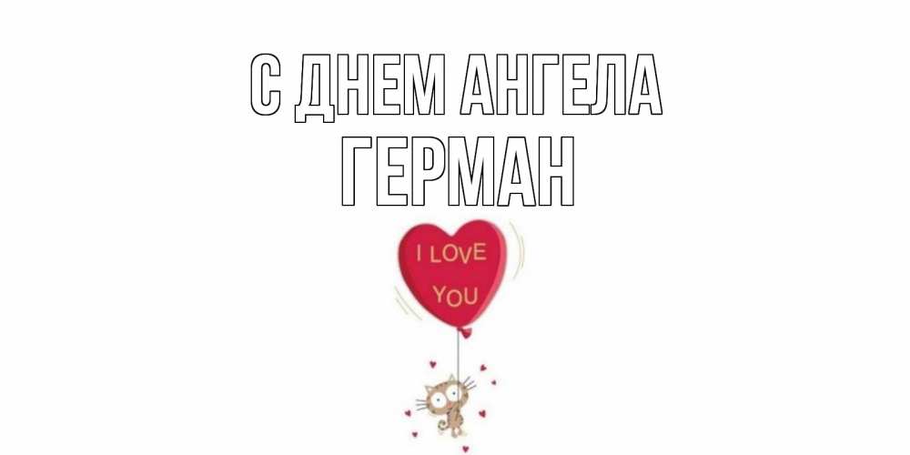 Открытка С днем Ангела Герман. Котик на шаре в виде сердца. кот, сердце