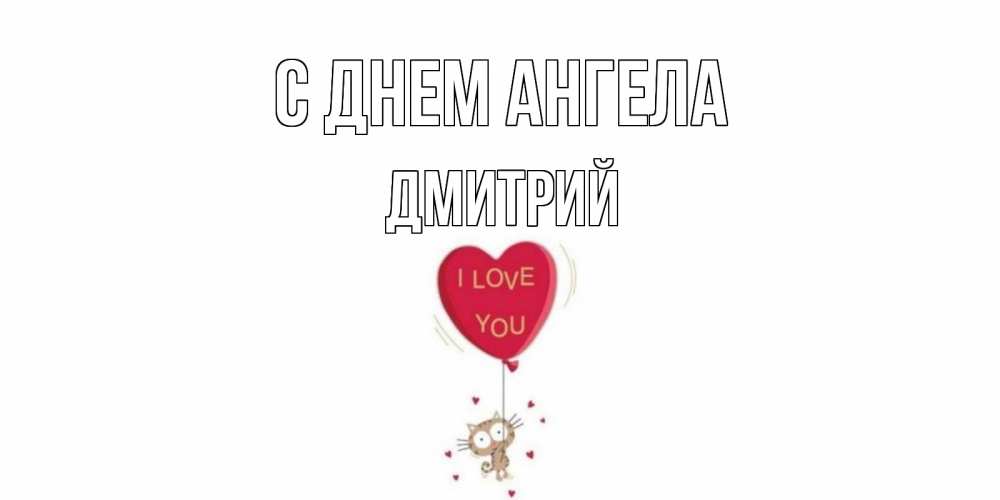 Открытка С днем Ангела Дмитрий. Котик на шаре в виде сердца. кот, сердце