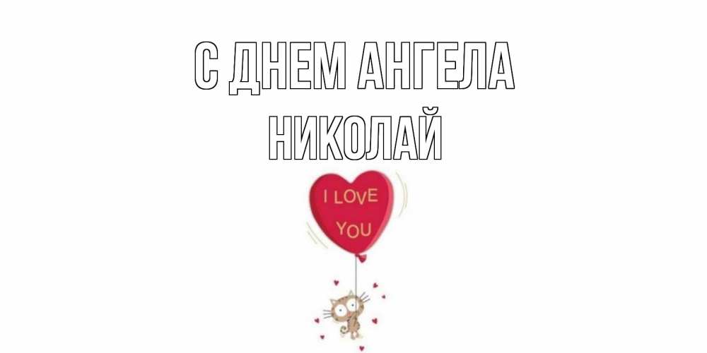 Открытка С днем Ангела Николай. Котик на шаре в виде сердца. кот, сердце