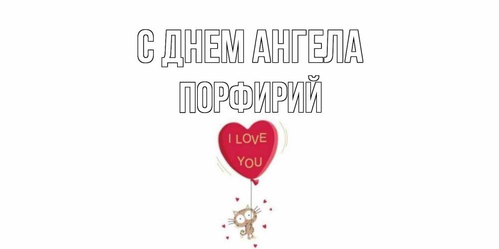 Открытка С днем Ангела Порфирий. Котик на шаре в виде сердца. кот, сердце