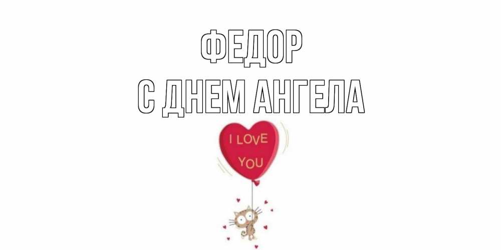 Открытка Федор С днем ангела. Котик на шаре в виде сердца. кот, сердце