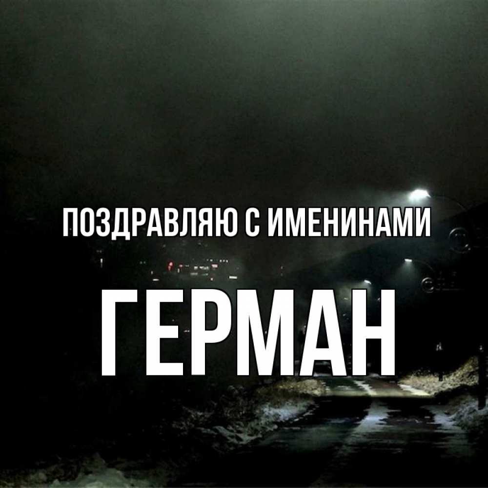 Открытка Поздравляю с именинами Герман. свалка. окраина города