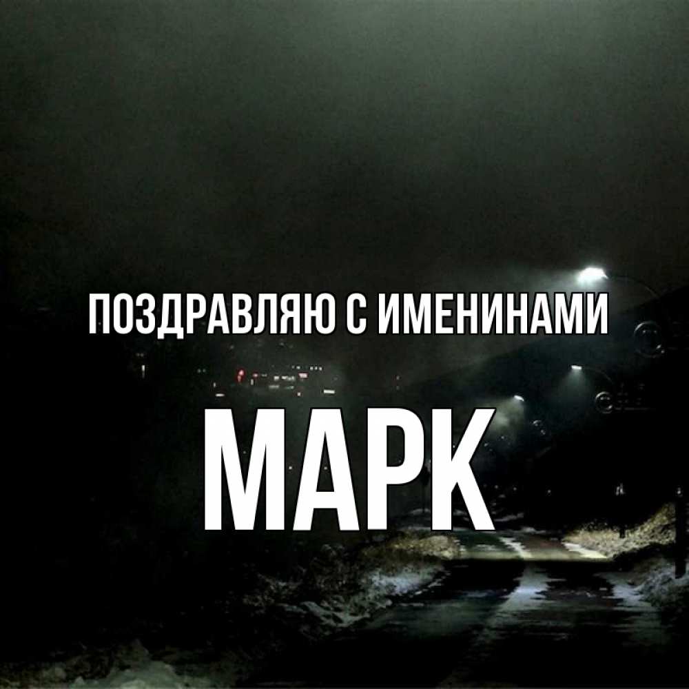 Открытка Поздравляю с именинами Марк. свалка. окраина города
