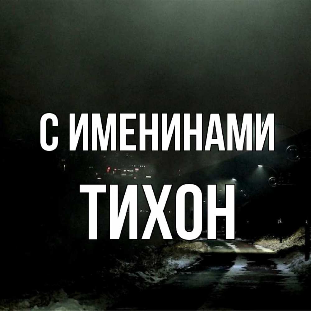 Открытка С именинами Тихон. свалка. окраина города