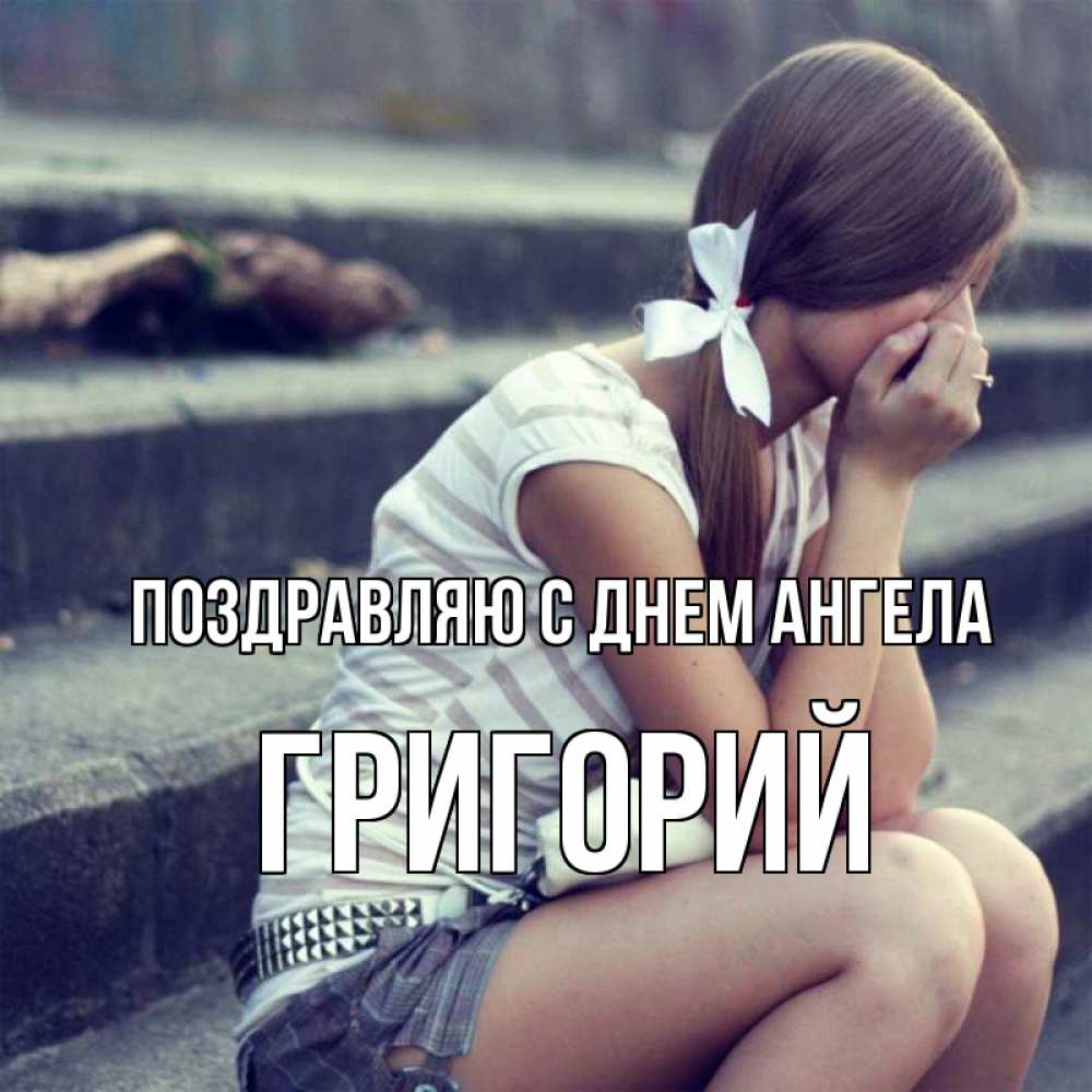 Открытка Поздравляю с днем Ангела Григорий. возвращайся. девушка плачет