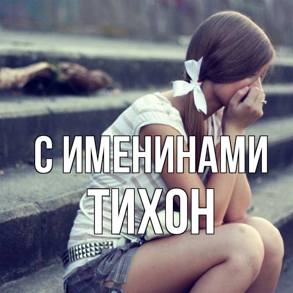 Открытка С именинами Тихон. возвращайся. девушка плачет