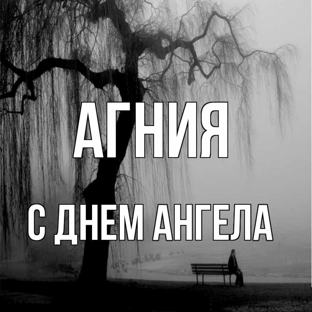 Открытка Агния С днем ангела. плаксивое дерево. лавочка под деревом я жду тебя