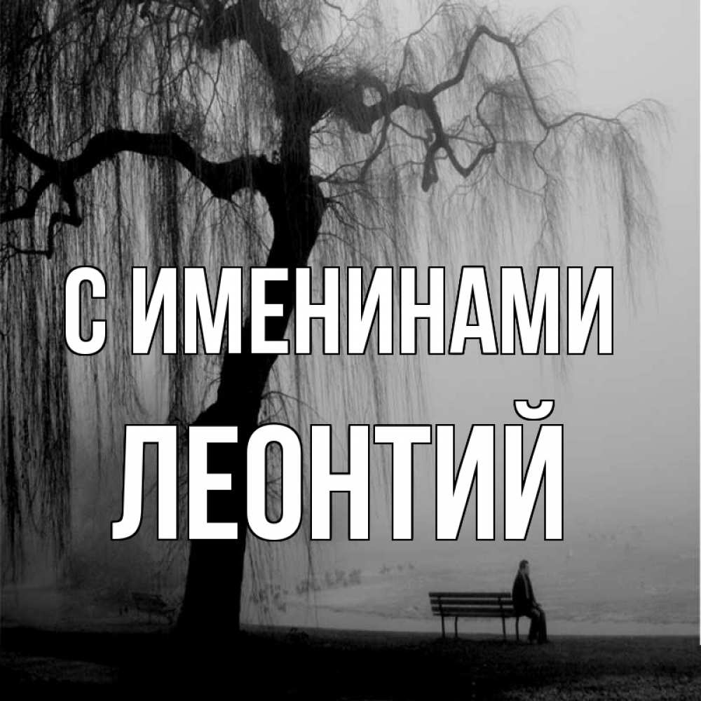 Открытка С именинами Леонтий. плаксивое дерево. лавочка под деревом я жду тебя