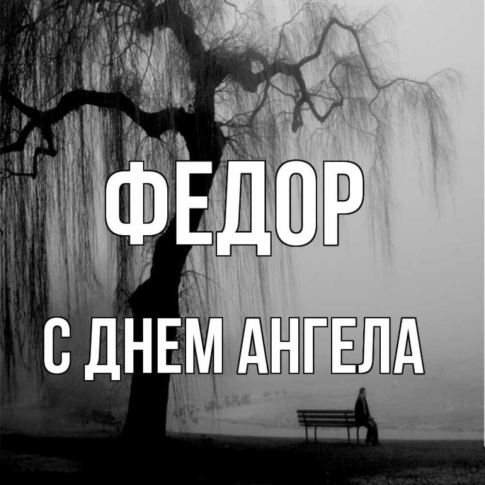 Открытка Федор С днем ангела. плаксивое дерево. лавочка под деревом я жду тебя