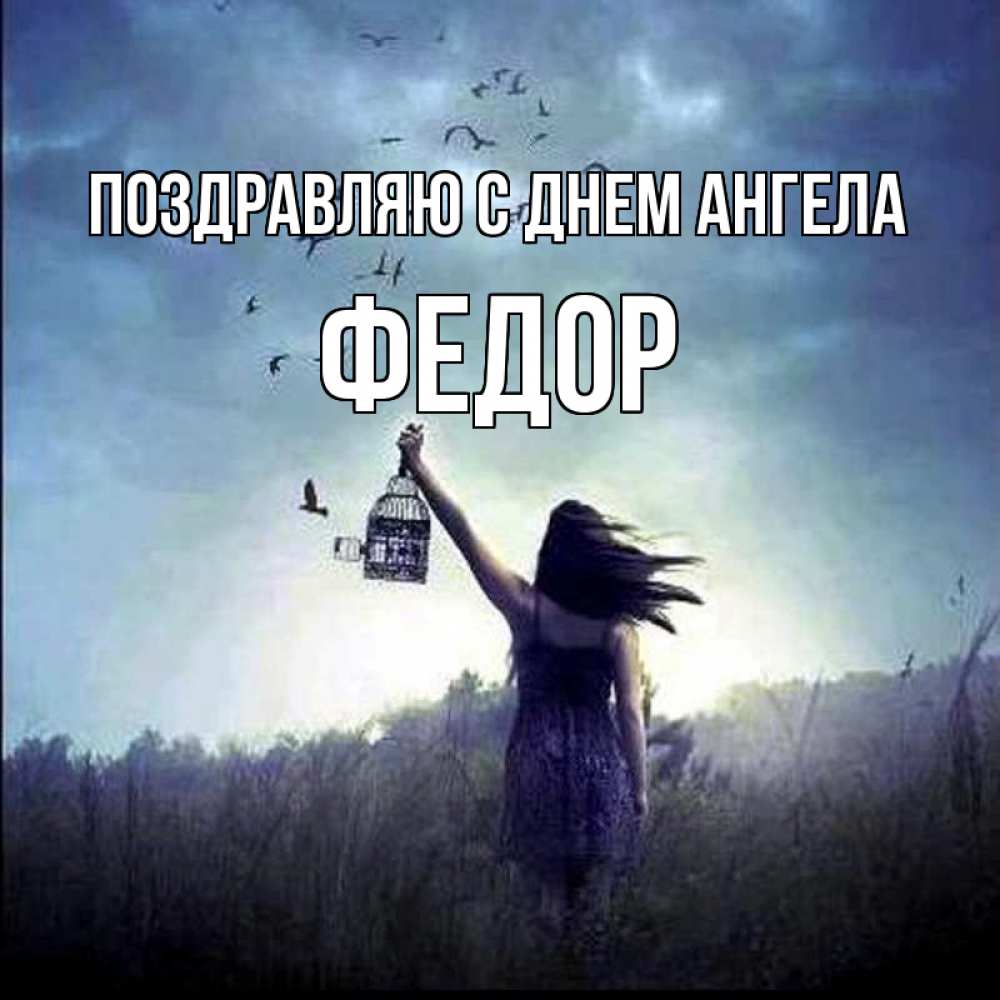 Открытка Поздравляю с днем Ангела Федор. выпускаем птиц. приходи ко мне