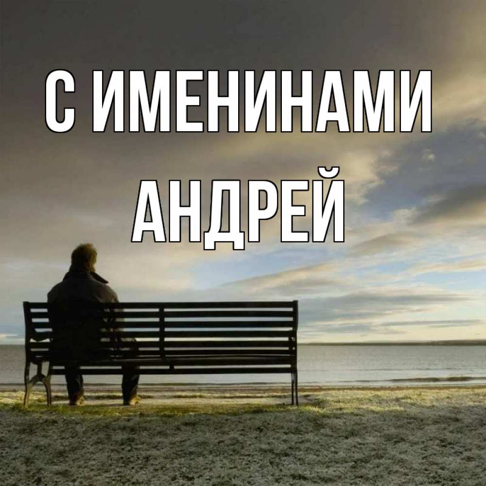 Открытка С именинами Андрей. сижу тут один и скучаю. лавочка