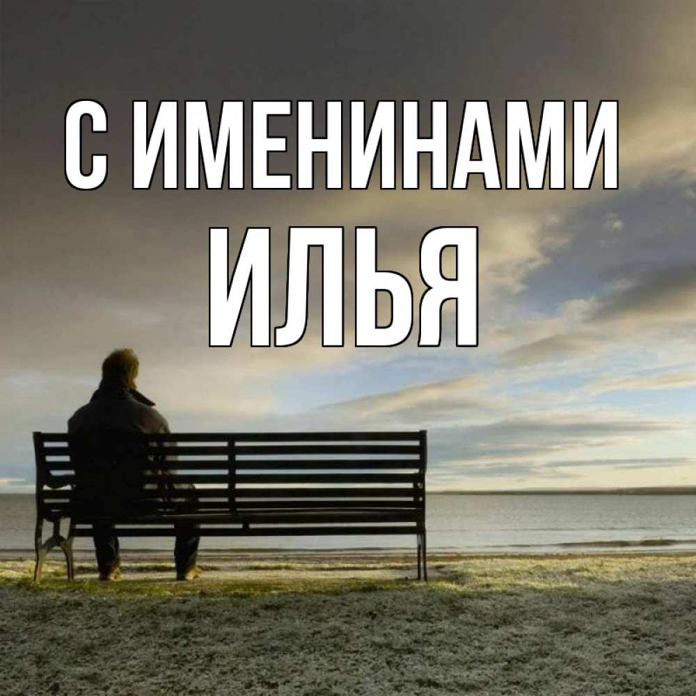 Открытка С именинами Илья. сижу тут один и скучаю. лавочка