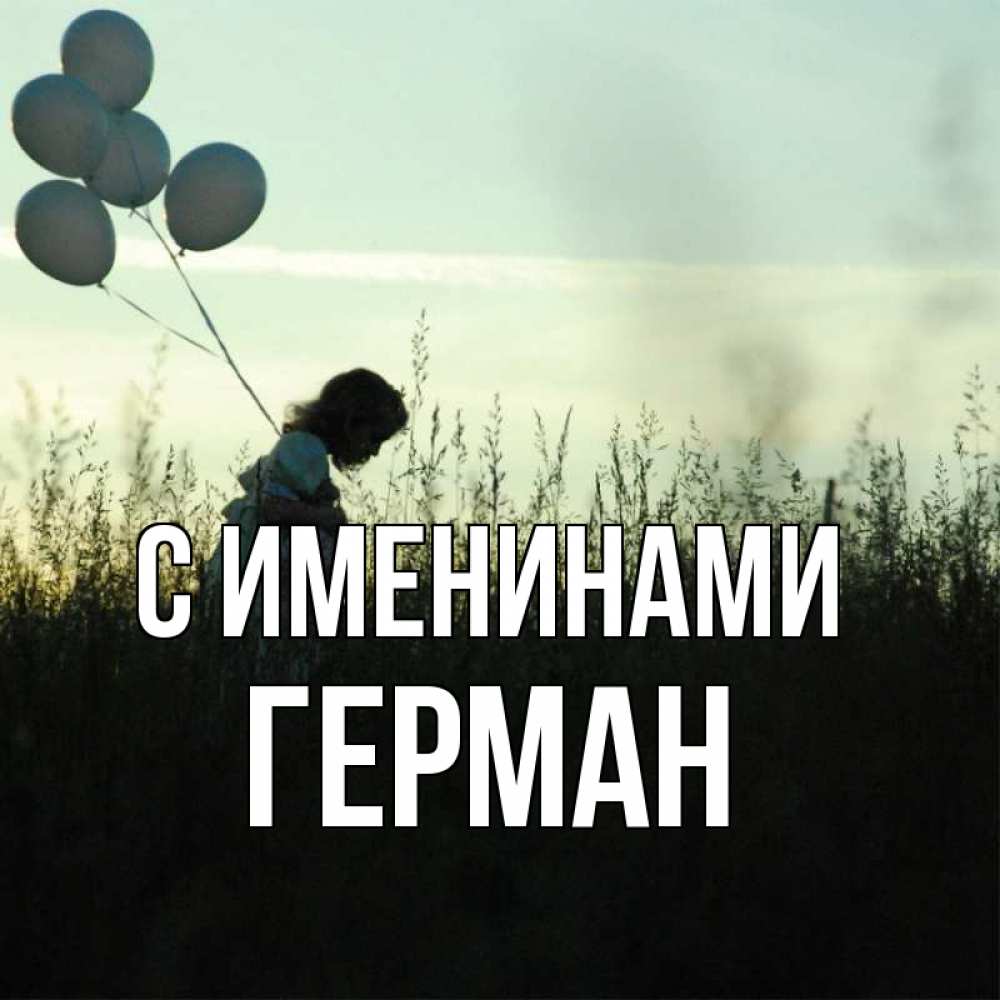 Открытка С именинами Герман. иду тут с шарами ищу тебя. приходи ко мне и давай дружить