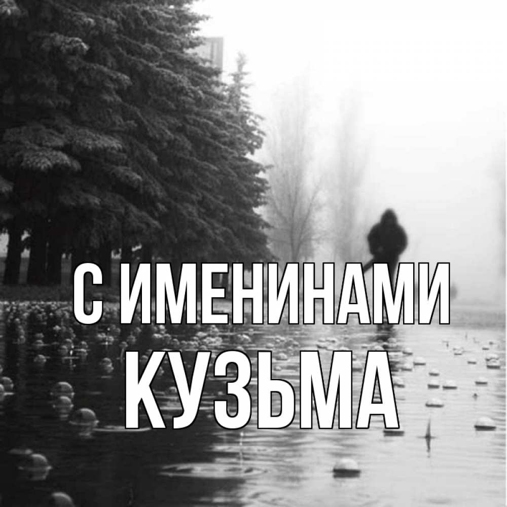 Открытка С именинами Кузьма. тут мокро и тоскливо без тебя. приходи