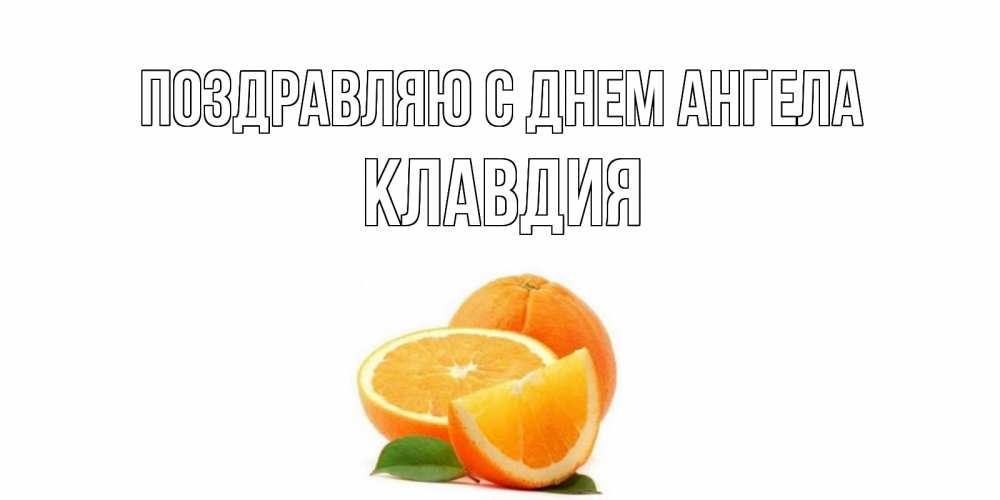 Открытка Поздравляю с днем Ангела Клавдия. мандарин нарезан на дольки с зеленым листом. мандарин