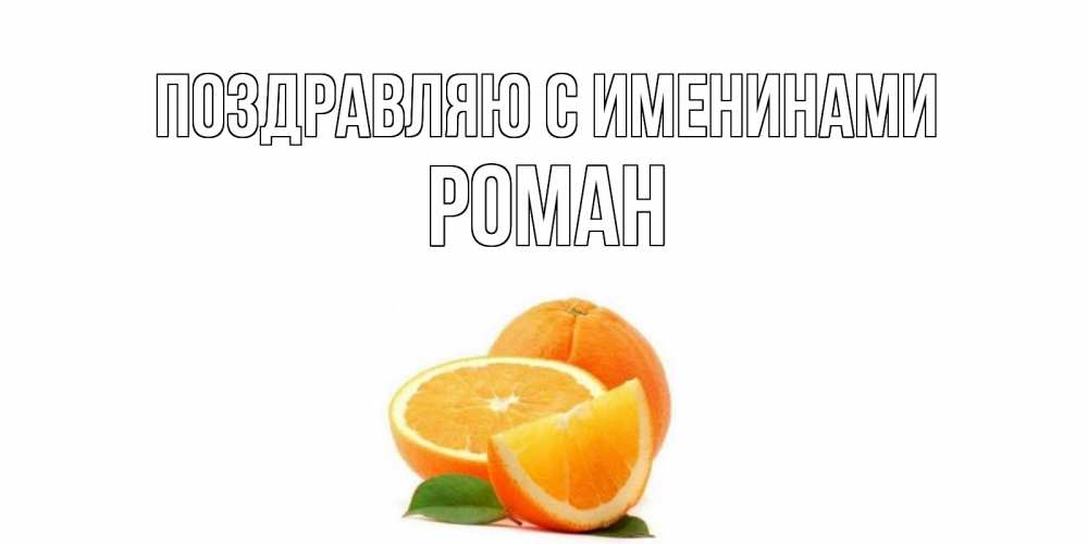 Открытка Поздравляю с именинами Роман. мандарин нарезан на дольки с зеленым листом. мандарин