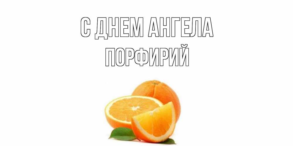 Открытка С днем Ангела Порфирий. мандарин нарезан на дольки с зеленым листом. мандарин